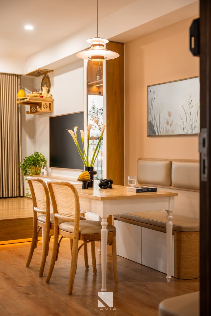 Căn hộ 72m2 dưới bàn tay của các KTS Lavia đã trở thành một không gian ấm cúng, là sự kết hợp giữa hiện đại và japandi